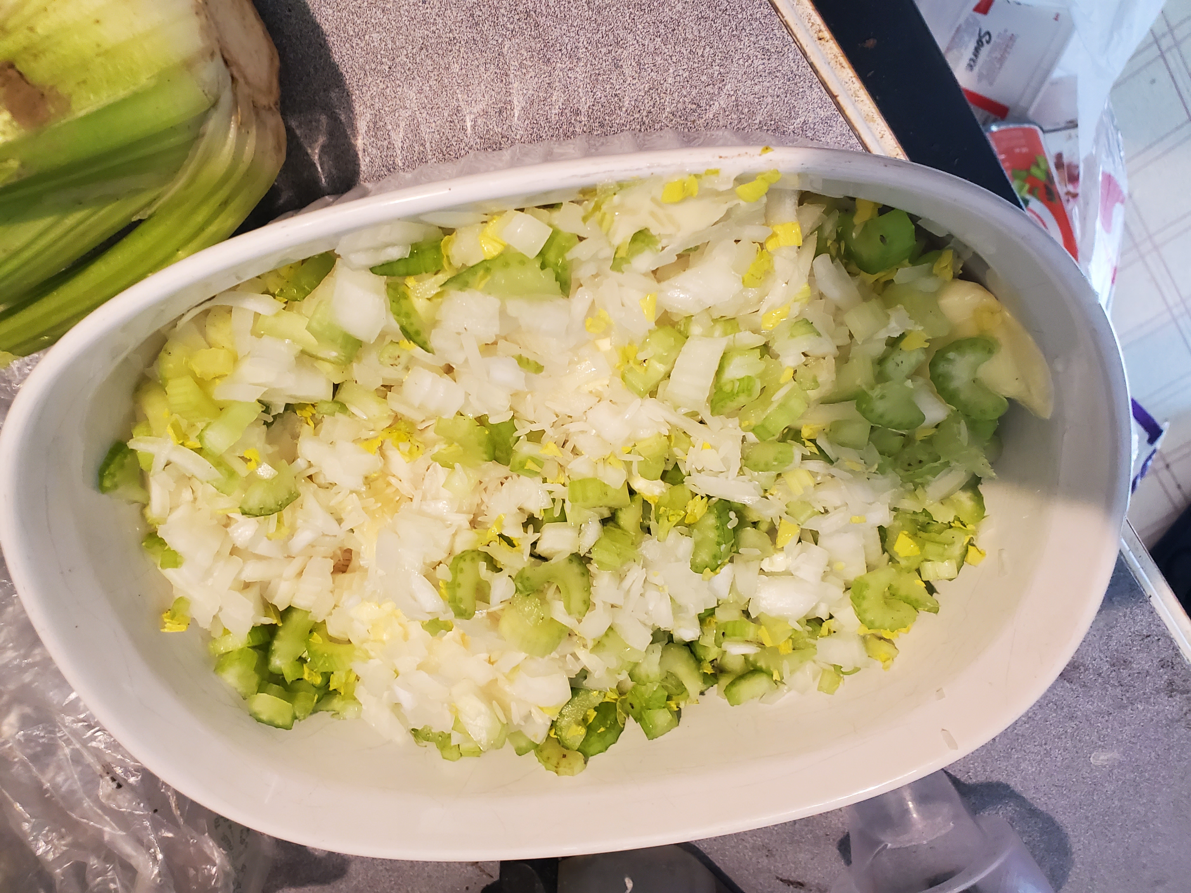 DirectionsPlace butter, rice, onion and celery in a microwavable casserole dish and microwave on High for 5 min. Add remaining ingredients give it a stir and microware for another 15 min Fluff up and serve |