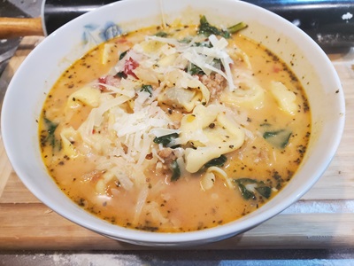 Add the spinach and tortellini and simmer for 3-5 minutes. (If your tortellini needs longer cooking time, add the tortellini first, then the spinach during the last 5 minutes.)