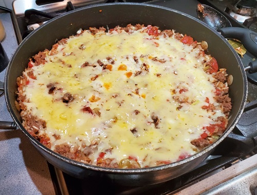 This recipe is something from my childhood. It is tasty, inexpensive and quick to make. I have modified the original by adding vegetables (celery mushrooms and bell peppers) increasing the spices and I use a better quality of cheese.