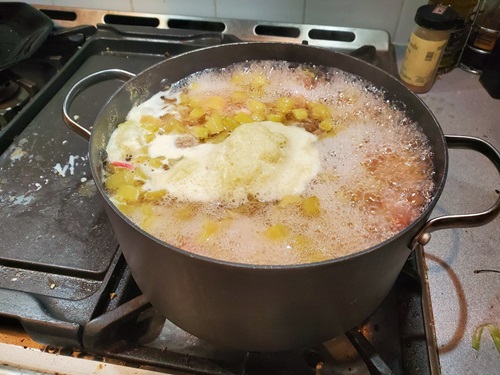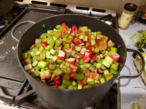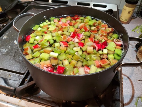 - Add Water until it covers the rhubarb and Boil until soft and mushy