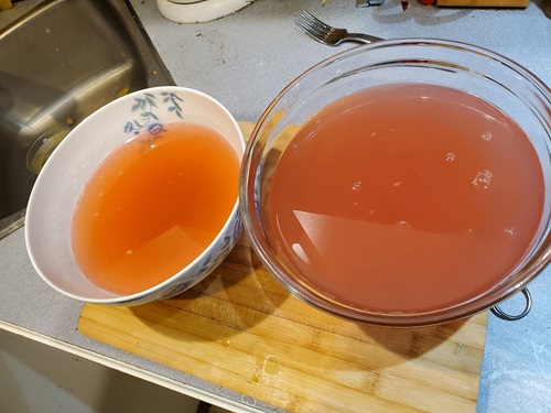 Note: I like to use old Orange juice containers but anything can work, (Mason jar, pop bottle, etc) just be aware that if the expansion breaks the container it can make a huge mess of your freezer.